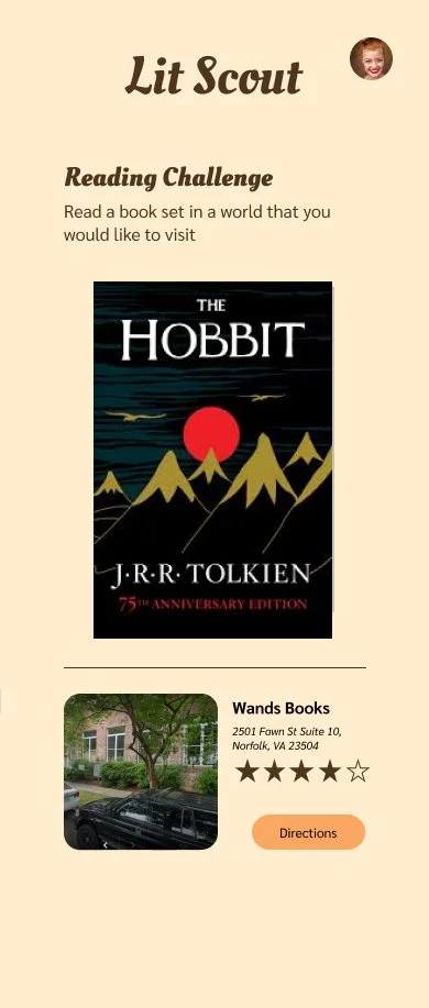 The class was given the task of creating an app based on a location that we thought could be more fun. A location that I have a personal attachment to is local bookstores. Introducing Litscout, an app that provides prompts and challenges that encourage the user to venture and explore local bookstores instead of bigger companies like amazon and Barns and Noble.